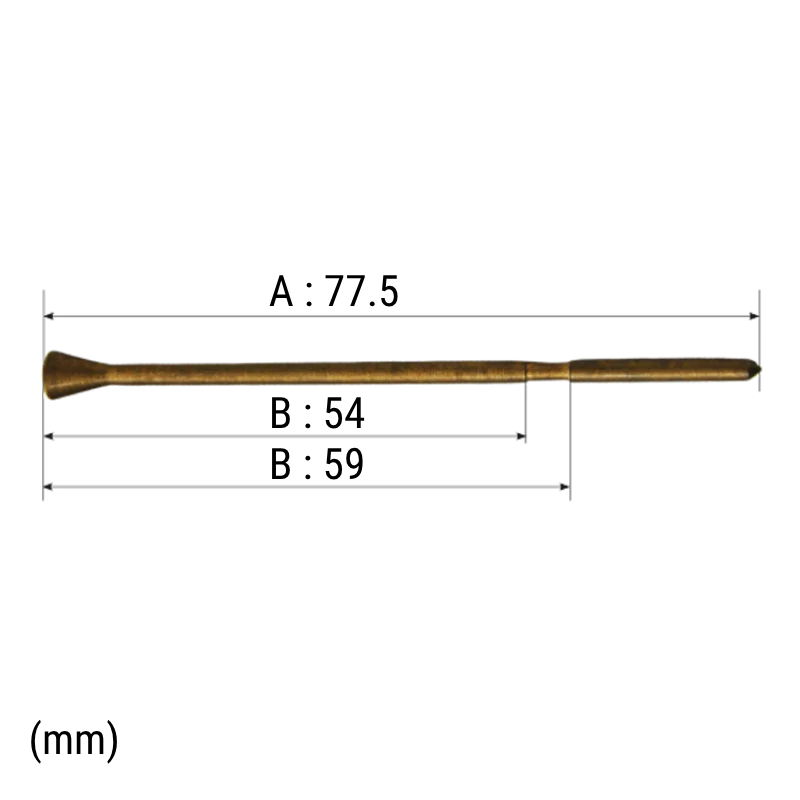 A : Longueur totale : 77.5mm - ¤ du corps de l'aiguille : 2.5mm.