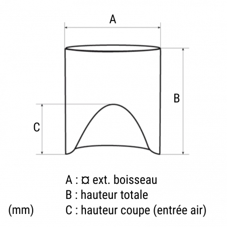 A : ¤ extérieur : 17.90mm - B : Hauteur totale : 20mm - C : Hauteur coupe (entrée d'air) : 11mm.