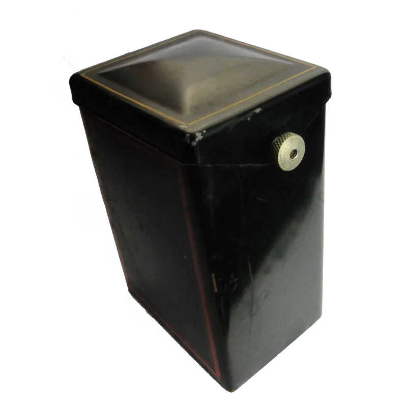 Coloris : Noir et filet rouge. Couvercle en forme type "pointe de diamant".
